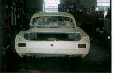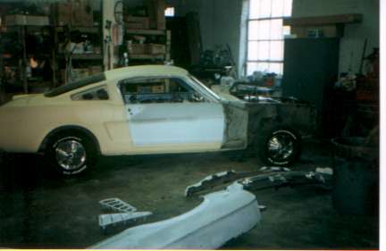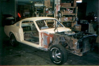 On July 25, 1995 I pulled the fastback into the shop and started to take it apart. I had all the body work finished on the unibody and I wanted the rest of the pieces done off the car. I had very little rust to contend with. The original fenders received metal patch panels and the trunk lid was replaced. Other than that and a few other small rusty places I had a really nice bodied Mustang. The following pictures are taken around the time I took the car apart.