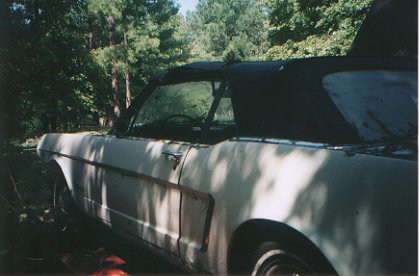 Another convertible.... This car is an early 65. Production was in September of 64. It had alot of 64.5 features. This car was a factory V-8 car with automatic transmission and power steering. It hardly had any structural rust like you would expect on a convertible. The inner and outer rockers and floor pans were excellent as were the torque boxes. We did have to put a left quarter panel and tailight panel in it from damage caused by a former accident. This car was also sold in Maggie Valley, NC on July 4th weekend except in 1996. This is the nicest car to-date that Lennie and I restored.