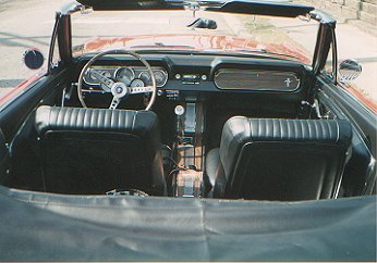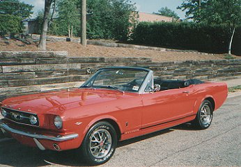 This 66 convertible was a car that was already owned by someone and we did the restoration. We did everything on the topside, he had had the engine and suspension work done elsewhere. This car was originally owned by the fellows' father so it had sentimental value. Who would ever guess that this car was a 6 cylinder with standard interior? We did what we were told to do! We converted it to a GT with black pony interior. The original color was candyapple, but it was changed to Signal Flare Red. It looks pretty good. The owner of this car hardly ever drives it nowadays.